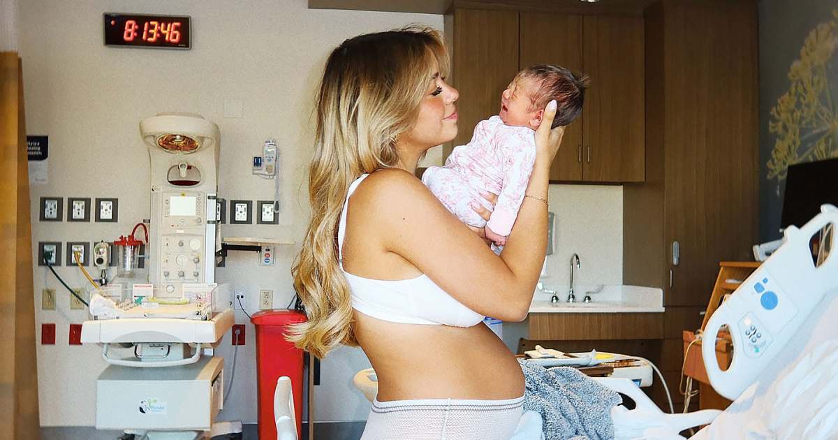 Jen subsequently uploaded photos of her holding her daughter while wearing a bra and a postpartum diaper.